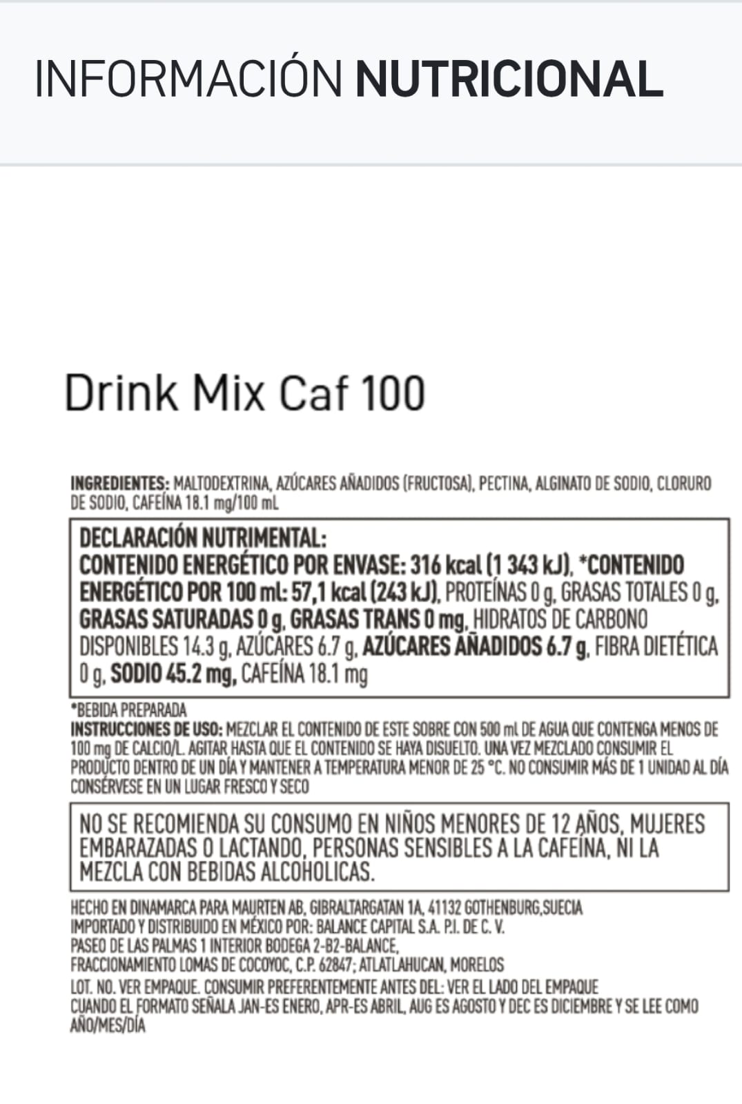 Cuando el Drink Mix 320 Caf 100 se mezcla con agua, se obtiene una bebida deportiva de hidrogel que contiene una alta concentración de carbohidratos y cafeína. Al entrar en contacto con la acidez del estómago, la bebida se convierte instantáneamente en hidrogel. Este permite que la bebida fluya fácilmente por el estómago hasta llegar al intestino, donde se absorben el agua, la sal y los carbohidratos.